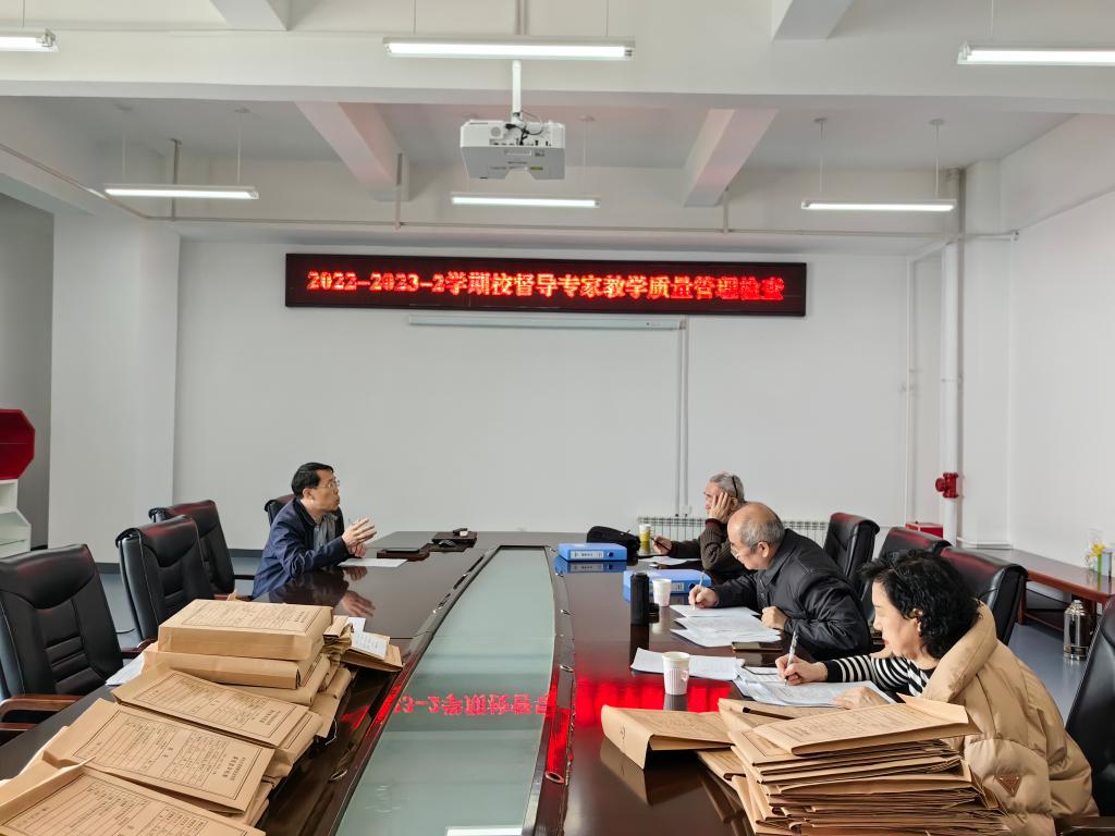 会议室,督导组认真查阅教学相关材料,随机查阅课程11门课程,抽取了33名学生的试卷,抽查了试题试卷归档情况。在督导过程中,赵俊利老师等对学院的教学工作加以肯定并提出了宝贵的建议。