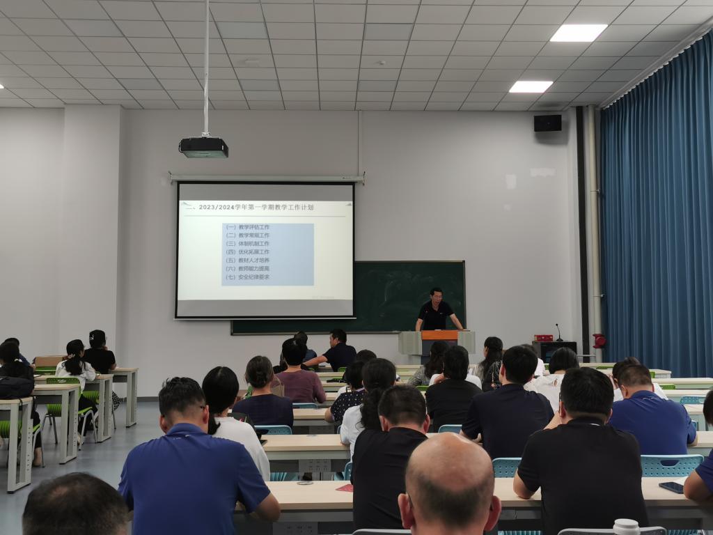 在学院C座202教室召开新学期教职工大会,学院书记高春强主持会议。院长王黎明、工程训练中心副主任冯再新、教学部主任出席会议,全院教职工参加会议。