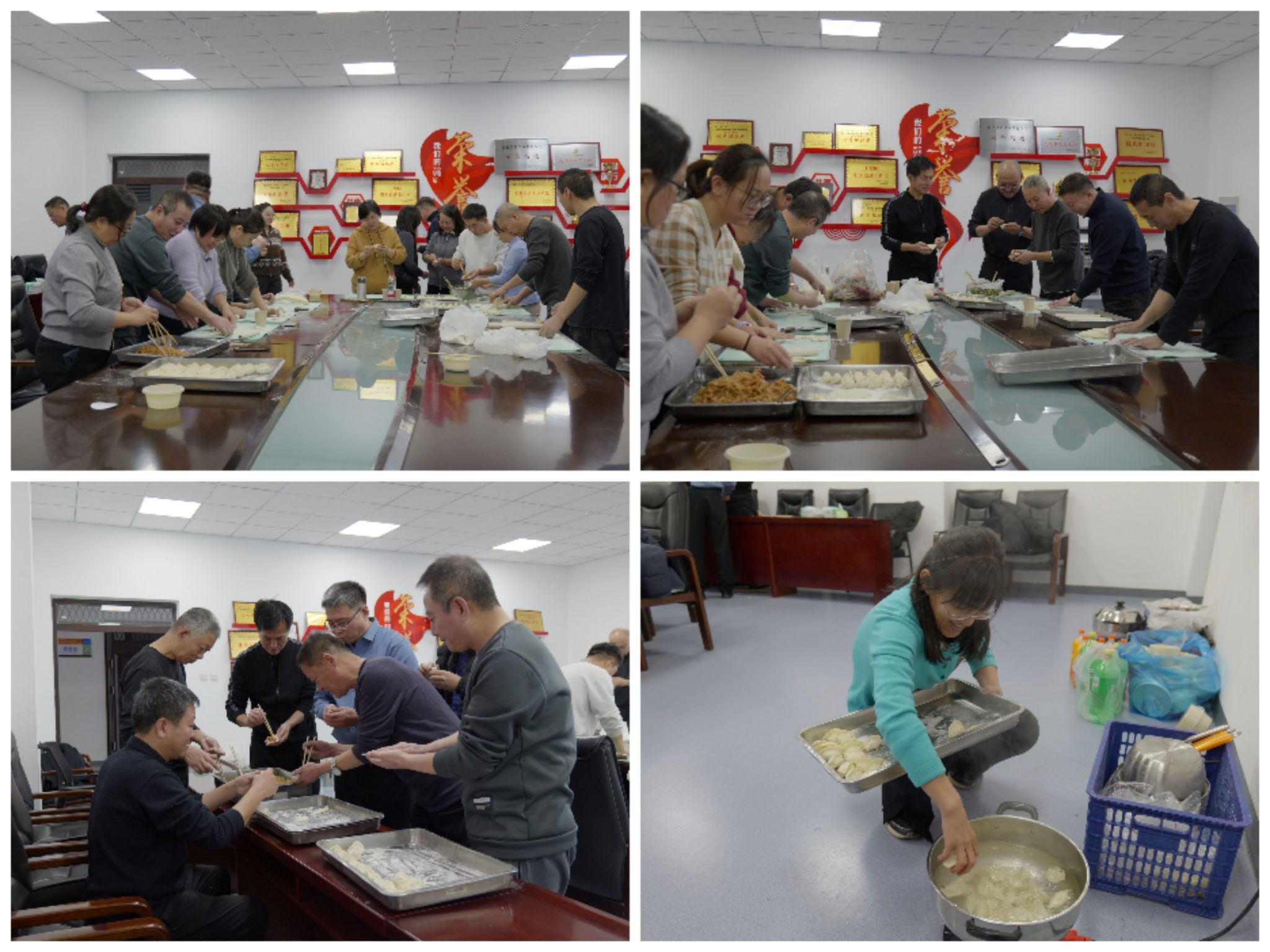 包饺子环节将氛围推向高潮。大家自发分工、默契配合,和面、擀皮、调馅、包捏一气呵成。学院领导与教职工围坐切磋“手艺”,唠家常、谈工作,其乐融融。形态各异的“创意饺子”饱含心意,热气腾腾的美食端上桌时,“家”味与年味交织弥漫,老师们互致问候、畅谈愿景,暖意十足。