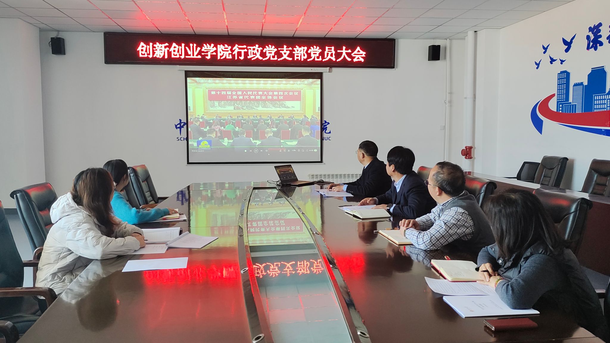 会议伊始,全体党员集中观看了习近平总书记在参加江苏代表团审议时的视频资料,深入学习领会总书记重要讲话精神。随后,郎文杰同志、李晓峰同志分别领学了《习近平在省部级主要领导干部学习贯彻党的二十届四中全会精神专题研讨班开班式上发表重要讲话》、《宣讲好党的二十届四中全会精神》和《为人民出政绩 以实干出政绩——习近平总书记引领全党以正确政绩观干事创业》等内容,引导党员进一步深化理论武装、提升政治站位。